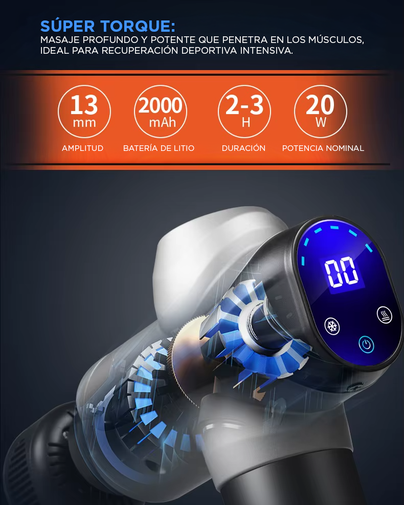 - Profundidad de impacto: 14 mm, alcanza capas musculares profundas para aliviar rigidez y